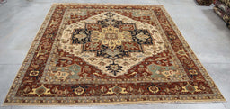 10x14 India Persian Serapi Terracotta Black Wool Rectangular Rug