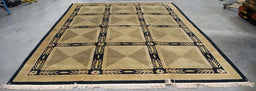 10x14 India Japiur Traditional Black Gold Wool Rectangular Rug