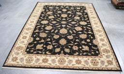 10x14 India Oushak Black Ivory Wool Rectangular Rug
