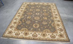 10x14 India Oushak Grey Ivory Wool Rectangular Rug