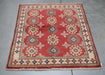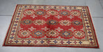 One-of-a-Kind Hand-Knotted Area Rug. 4x3 Pakistan Geometric Kazak Red Ivory Wool Rectangular Rug