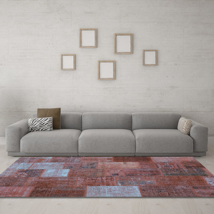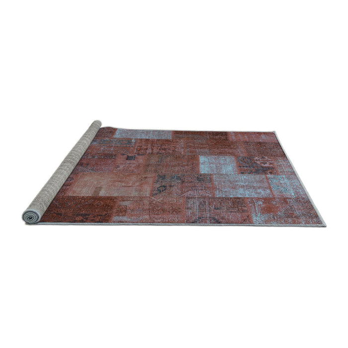 Machine Washable Patchwork Light Blue Transitional Rug, wshcon729lblu