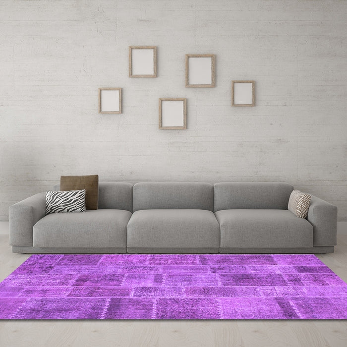 Machine Washable Patchwork Purple Transitional Rug, wshcon740pur