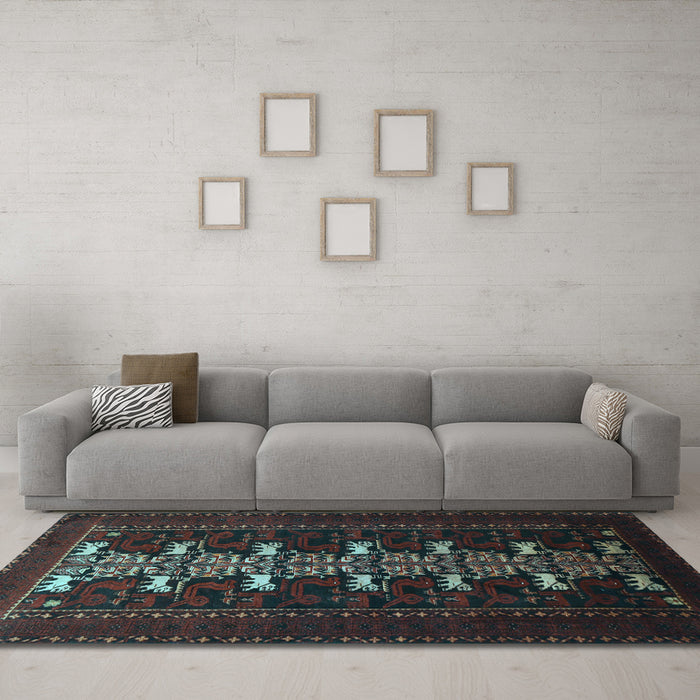 Machine Washable Animal Light Blue Traditional Rug, wshtr1758lblu