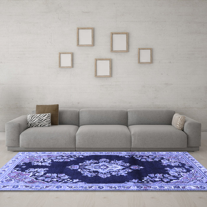 Introducing our Machine Washable Medallion Blue Traditional Area Rug, the perfect addition to enhance the beauty and comfort of your home. With its timeless design and durable construction, this rug combines style and functionality to create a stunning focal point in any room. Crafted with care, our Medallion Blue Traditional Area Rug features an intricate medallion pattern, adding an elegant touch to your living space. The rich blue color palette exudes a sense of tranquility and sophistication, seamlessly blending with a variety of decor styles. What sets our area rug apart from the rest is its remarkable machine washable feature. Say goodbye to the hassle of spot cleaning or expensive professional cleaning services. Simply toss this rug into your washing machine whenever it needs a refresh, and it will come out looking as good as new. This convenient feature not only saves you time and money but also ensures a clean and hygienic living environment. Designed to withstand the test of time, our Medallion Blue Traditional Area Rug is made from high-quality materials. The durable fabric and sturdy construction prevent wear and tear, making it ideal for high-traffic areas such as living rooms, dining rooms, or entryways. Additionally, the non-slip backing provides extra safety, preventing the rug from slipping and sliding on smooth surfaces. Whether you're looking to add warmth to your hardwood floors or create a cozy seating area, our Machine Washable Medallion Blue Traditional Area Rug is the perfect choice. Enjoy the comfort and luxury it brings while effortlessly maintaining its pristine appearance.