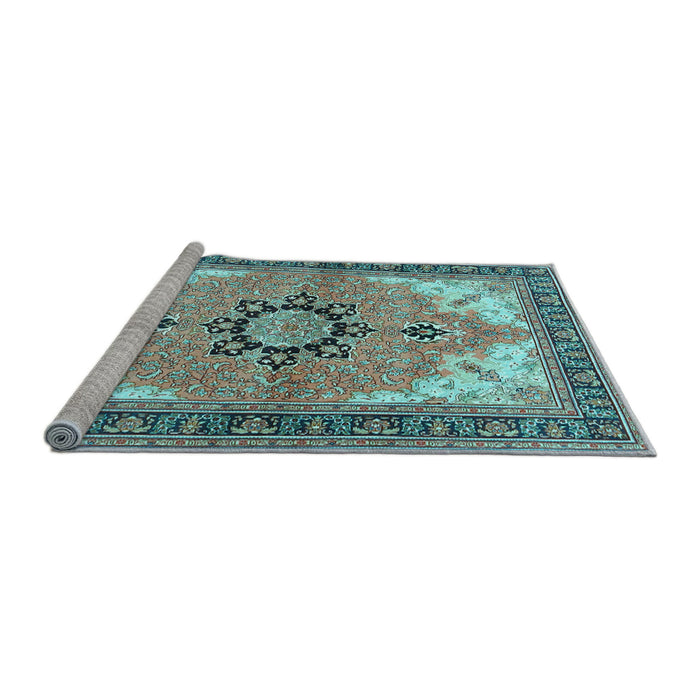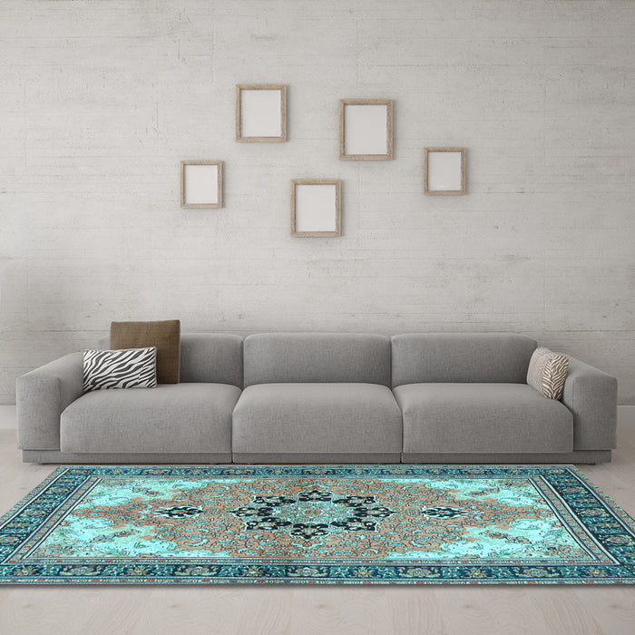 Machine Washable Medallion Light Blue Traditional Rug, wshtr4753lblu