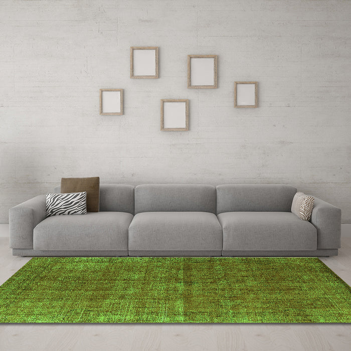 Machine Washable Oriental Green Industrial Rug, wshurb1037grn