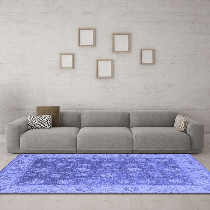 Machine Washable Oriental Blue Traditional Rug, wshurb765blu