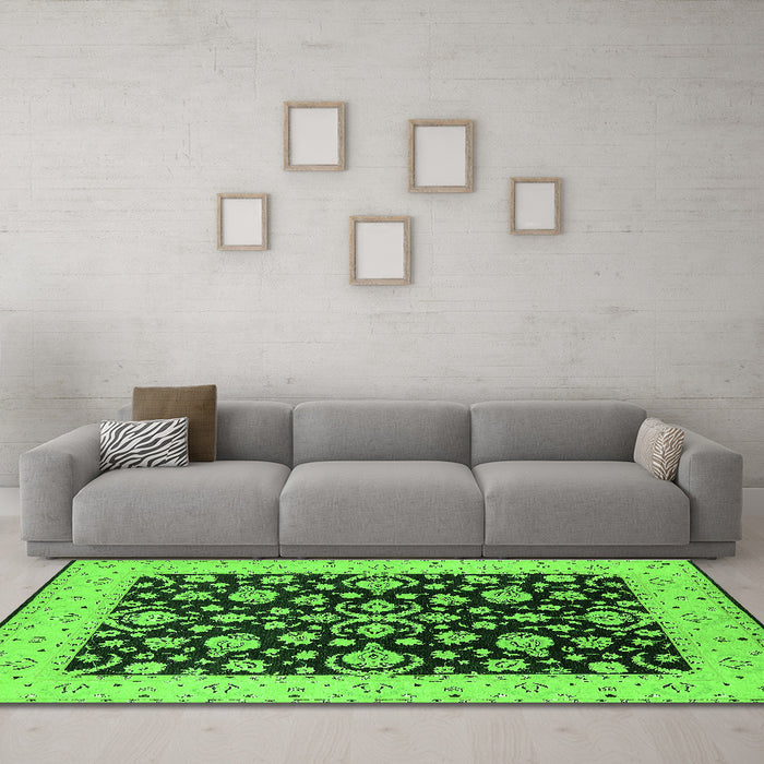 Machine Washable Oriental Green Traditional Rug, wshurb776grn