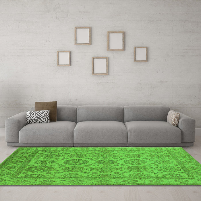 Machine Washable Oriental Green Industrial Rug, wshurb781grn