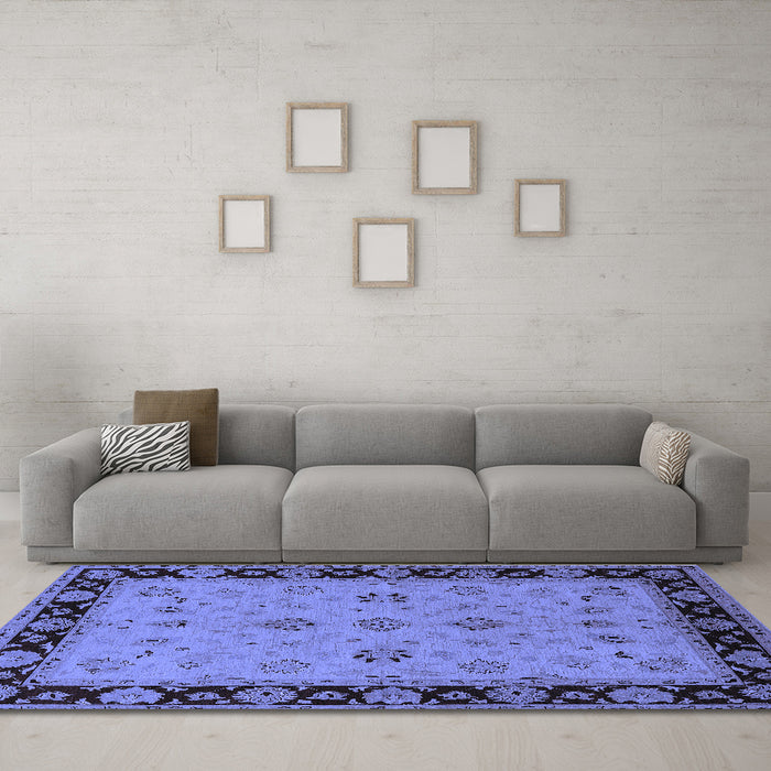 Machine Washable Oriental Blue Traditional Rug, wshurb811blu