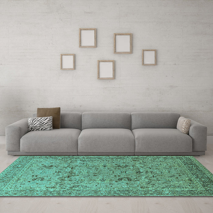 Machine Washable Oriental Turquoise Traditional Rug, wshurb870turq
